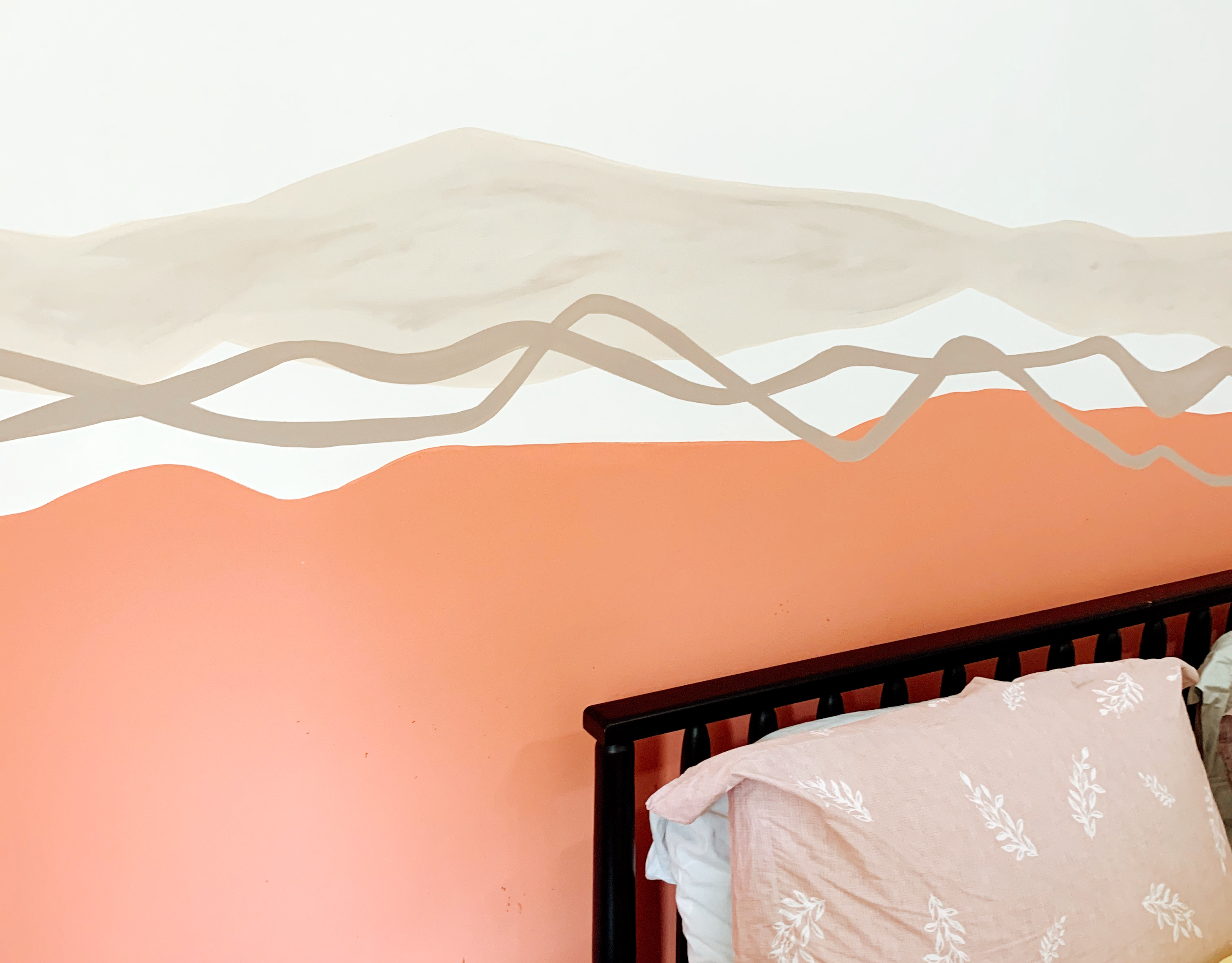 mural folhagens cinza com rosa